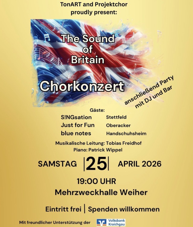 Spargeldorf Weiher einem Ortsteil der Gemeinde Ubstadt-Weiher bei Bruchsal. Wir sind ein leistungsorientierter Männerchor und haben seit 2006 auch einen neuen gemischten Chor TonART. Mit unserm jungen, dynamischen Dirigenten Tobias Freidhof pflegen wir Volkslieder und Chorwerke alter und neuer Meister. Modernes Liedgut und Gospel gehören ebenso zu unserem Repertoire. Es bereitet große Freude mit Freunden zu Singen.